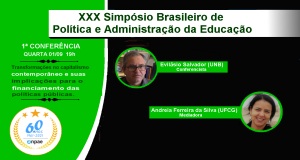 Conferência Especial - Conferencistas: Fátima Silva – CNTE, Nilton Brandão – PROIFES, Luiz Dourado – ANPAE, Miriam Fábia – ANPED. Mediadora: Natalia de Souza Duarte (Anpae-DF).